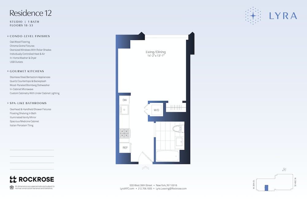 Located in Hudson Yards, The Olivia offers convenient access to the city’s dining, shopping, and transportation options. This studio apartment features a modern layout designed for comfortable city living. The building’s central location provides a vibrant urban lifestyle with nearby parks and waterfront paths.